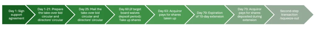 This process is the only one available for unsolicited or “hostile” bids, meaning that the agreement of the target itself is not required and the acquiror can force an acquisition through negotiations with the shareholders of the target.